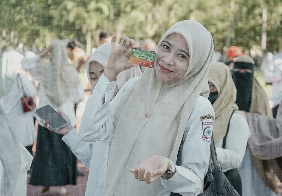 Satu per satu dari mereka mengangkat kartu tersebut tinggi-tinggi sebagai bukti nyata kepemilikan dan dukungan terhadap program daerah.