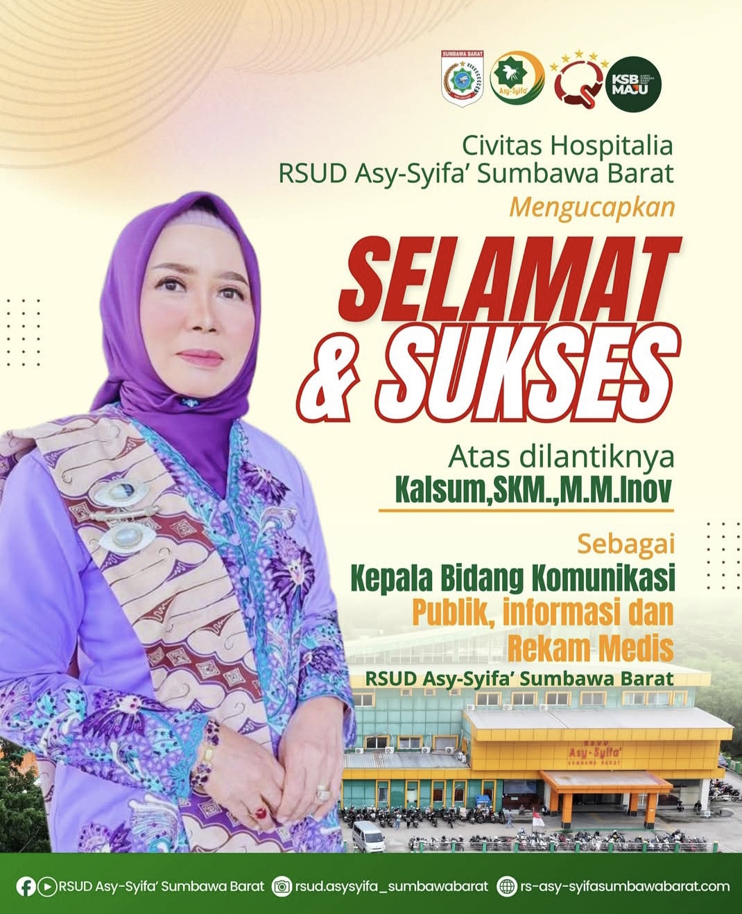 Iklan Selamat dan Sukses Pelantikan Kalsum, SKM, MM.Inov, Sebagai Kabid Komunikasi Publik, Informasi dan Rekam Medis RSUD Asy’Syifa KSBSutan Zaitul Ikhlas2 Oktober 20258 Oktober 2025Hubungi Kami, Iklan/Adventorial, Kesehatan, KSB