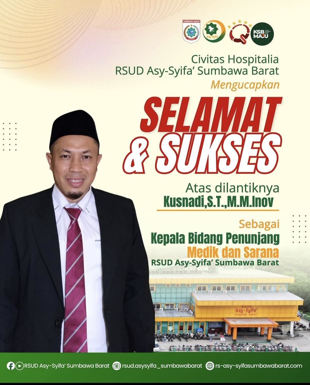 Iklan Selamat dan Sukses Pelantikan Kusnadi, ST.MM.Inov Sebagai Kabid Penunjang Medik dan Sarana RSUD Asy’Syifa KSB