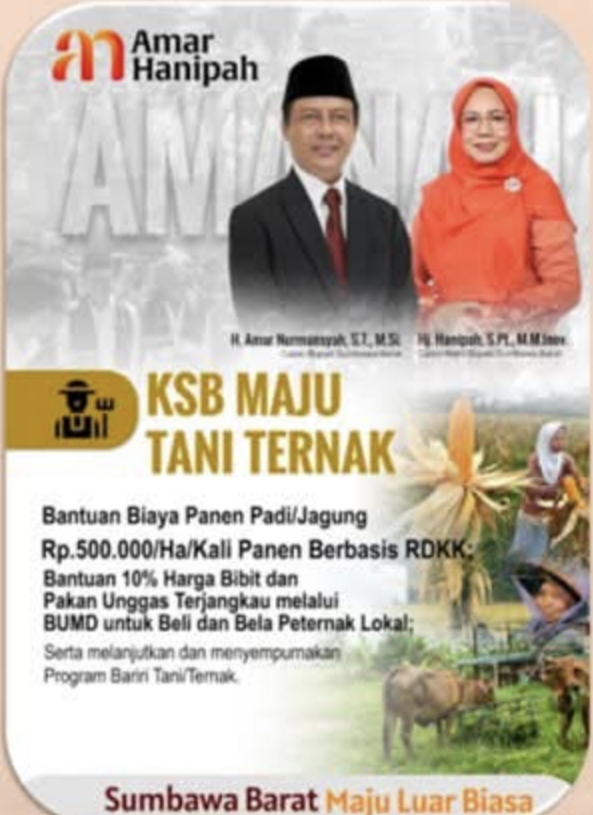 Jamilatun menegaskan Program KSB Maju Tani Ternak merupakan langkah besar untuk meningkat pertanian maupun peternakan di Kabupaten Sumbawa Barat. Bertujuan untuk menyejahterakan petani dan peternak melalui berbagai bantuan, termasuk subsidi panen padi dan jagung, subsidi unggas dan pakan, serta modernisasi pertanian.